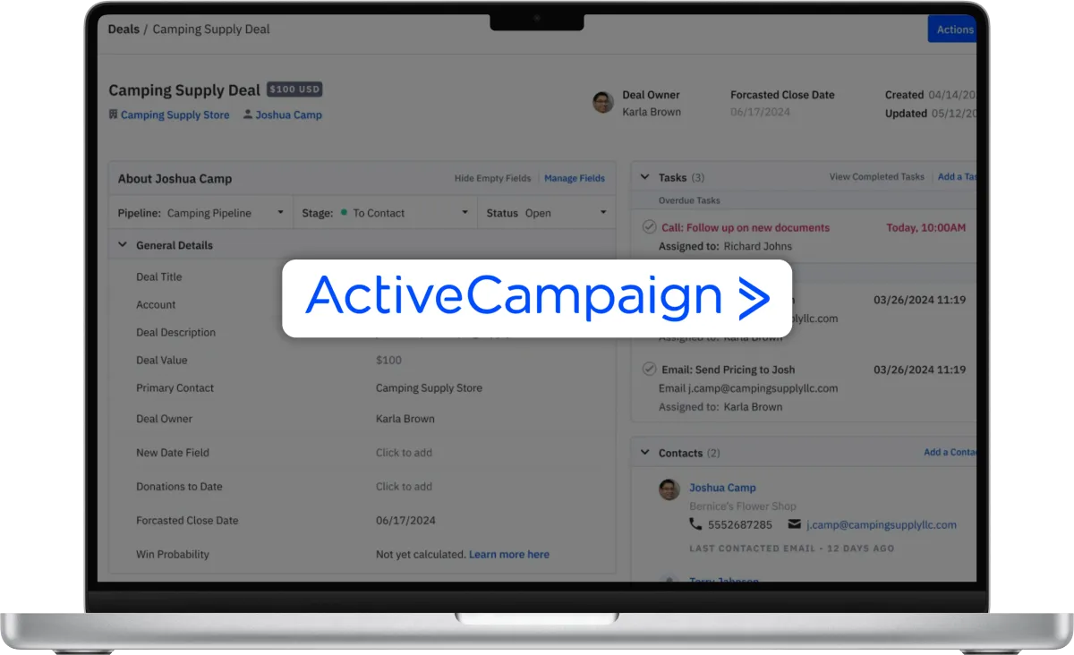 Great CRM, that besides their CRM features, also offers great Email Marketing Tool. A bit pricy, but if Email Marketing is important for you this is a must have.